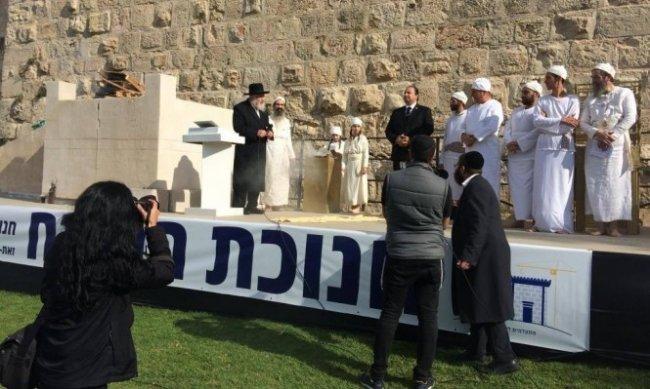 لذلك، استخدم نشطاء "الهيكل" كتل الطوب المصنع، وقال أحد النشطاء، ويدعى شمشون ألبوميم: "في النهاية سيكون هناك مذبح فاخر، لكن في الوقت الحالي هذا ما نمتلكه، وبمجرد فتح البوابات سنكون مستعدين للصعود إلى (جبل الهيكل) ساحات الحرم القدسي الشريف"، مضيفا أن قرار استخدام كتل الطوب المصنع في بناء المذبح أتخذ بعد مناقشات دينية للحاخامات.