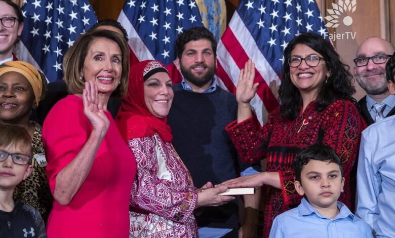 تلفزيون الفجر| ظهرت الفلسطينية الأصل، رشيدة طليب، بالثوب الفلسطيني أثناء تواجدها داخل الكونجرس الأمريكى لأداء اليمين الدستوري كنائبة ديمقراطية منتخبة عن ولاية ميتشجن.