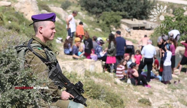 وشوهد مئات المستوطنين في بركة مياه في المكان، في محاولة للسيطرة عليها.