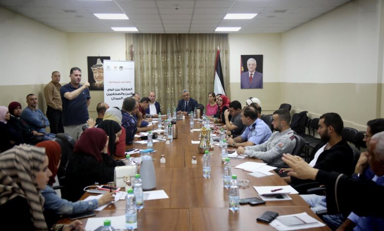 طولكرم: تنظيم ورشة تدريبيةً تحت رعاية المحافظ أبو بكر عن تعزيز العلاقة ما بين الإعلام والقطاع الأمني
