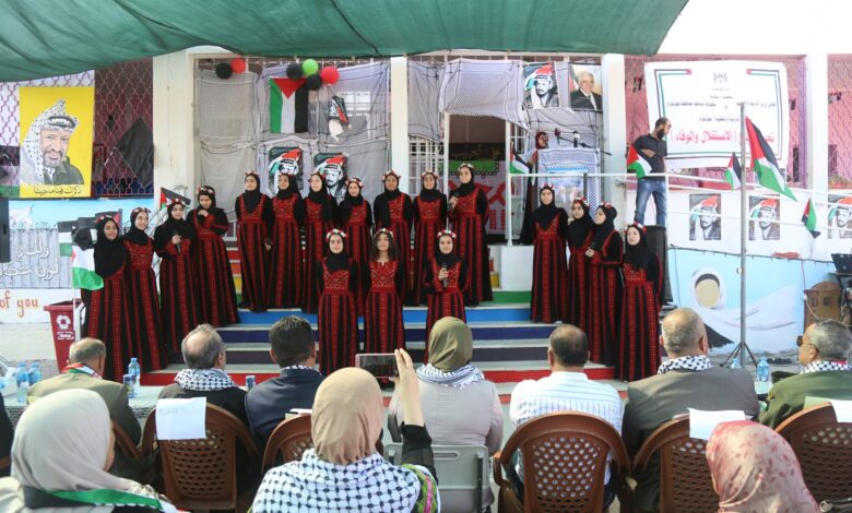 هذا وألقى حمدان إسعيفان كلمة باسم حركة فتح وفصائل العمل الوطني، موجهاً التحية لروح الشهيد أبو عمار، مؤكداً على أنه أرسى قواعد الثورة الفلسطينية، مدافعاً عن الحق الوطني، موضحاً بان الشهيد ياسر عرفات سلم الأمانة للرئيس محمود عباس وهو خير مدافع عن حقوق أبناء شعبنا في كل مكان، معبراً عن شكره للتربية والتعليم على تنظيم هذه النشاط المركزي لإحياء المناسبات الوطنية حتى تبقى حيةً في ذاكرة طلابنا وطالباتنا.