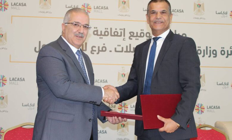 وقع معالي وزير النقل والمواصلات عاصم سالم ظهر اليوم الاربعاء إتفاقية تعاون مع شركة لاكاسا القابضة ممثلة برئيس مجلس إدارتها م. عماد عبد الجابر ، وذلك بهدف افتتاح دائرة لوزارة النقل والمواصلات في لاكاسا مول بضاحية الريحان .