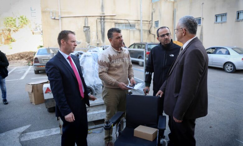 محافظ طولكرم يتسلم 10 كراسي كهربائية من قوافل الخير مخصصة لذوي الإعاقة من طلبة المدارس