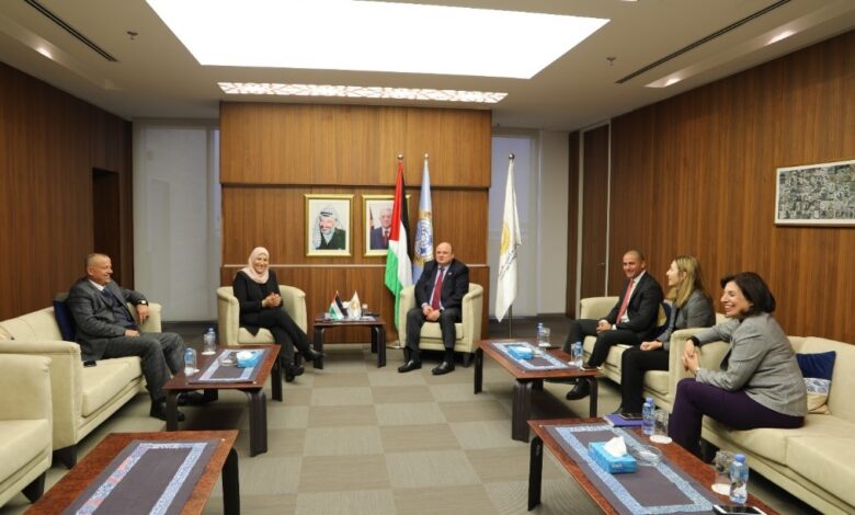 تلفزيون الفجر | رام الله -التقى معالي محافظ سلطة النقد الفلسطينية السيد عزام الشوا، في مكتبه برام الله، بمعالي وزيرة شؤون المرأة الدكتورة آمال حمد، بحضور عطوفة وكيل وزارة شؤون المرأة السيد بسام الخطيب، ومن سلطة النقد السيد إياد الزيتاوي المدير التنفيذي لمجموعة الاستقرار المالي، والسيدة رولا معلوف المدير التنفيذي لمجموعة العمليات الإدارية، والسيدة أيرين سعادة مديرة دائرة العلاقات العامة والاتصال.