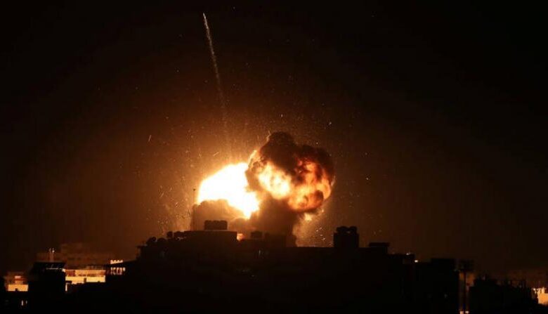 وقالت مصادر محلية في قطاع غزة ان الانفجارات ناجمة عن استهداف طائرات الاحتلال الحربية بدون طيار محيط موقع السفينة شمال غرب مدينة غزة بصاروخين على الاقل.