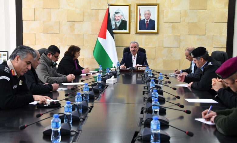 بحث رئيس الوزراء د. محمد اشتية مع قادة الأجهزة الأمنية تشديد الإجراءات الوقائية التي أعلنتها لجنة الطوارئ الوطنية، وبحث كيفية التعاطي مع آلاف العمّال العائدين من أماكن عملهم في إسرائيل، وتقييم مسار الإجراءات المتبعة، وذلك اليوم الأربعاء في مكتبه في رام الله وبحضور وزيرة الصحة مي كيلة.