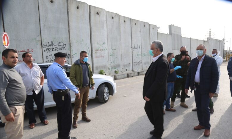 محافظ طولكرم عصام أبو بكر يتابع إجراءات إستقبال العمال العائدين من الداخل بالقرب من بوابة 104