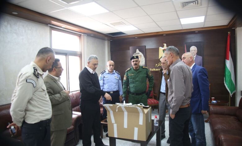 محافظ طولكرم يتسلم خيمتين ومجموعة من واقيات الوجه لصالح لجنة الطوارئ في مواجهة خطر انتشار فيروس كورونا
