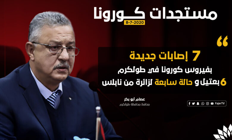 أعلن محافظ طولكرم عصام أبو بكر، تسجيل 6 إصابات بفيروس كورونا في بلدة عتيل شمال طولكرم وحالة سابعة لمواطنة من نابلس تتواجد في المدينة بعد إصابة أحد أفراد من عائلتها.