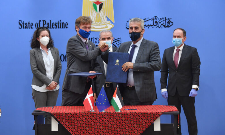 تحت رعاية وحضور رئيس الوزراء د. محمد اشتية، وقع وزير الحكم المحلي مجدي الصالح وممثل الاتحاد الأوروبي لدى فلسطين سفين كوهان فون بورغسدورف، بحضور ممثلة الدنمارك نتاليا فاينبرغ وممثل صندوق تطوير واقراض البلديات محمود الرمحي، اتفاقية بقيمة 5.8 مليون يورو من الاتحاد الاوروبي والدنمارك، وذلك اليوم الثلاثاء في مكتب رئيس الوزراء برام الله.