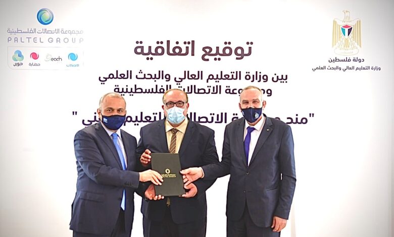 وقعت وزارة التعليم العالي والبحث العلمي ومجموعة الاتصالات الفلسطينية مذكرة تفاهم لتوزيع 300 منحة دراسية في مجال التعليم التقني، على مجموعة من الطلبة الناجحين في امتحان الثانوية العامة، في الضفة والقطاع ووقع الاتفاقية وزير التعليم العالي والبحث العلمي أ.د. محمود أبو مويس، والرئيس التنفيذي لمجموعة الاتصالات الفلسطينية عمار العكر، وبحضور وزير الاتصالات وتكنولوجيا المعلومات د. اسحق سدر ومدراء من وزارة الاتصالات وتكنولوجيا المعلومات ووزارة التعليم العالي والبحث العلمي ومجموعة الاتصالات، والتي سيتم بموجبها توزيع منح مجموعة الاتصالات على طلبة الثانوية العامة في المجال التقني، بما ينسجم مع احتياج سوق العمل.
