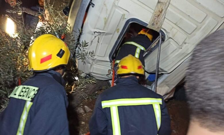 الدفاع المدني : إخلاء إصابة في إنقلاب مركبة شحن جنوب شرق نابلس