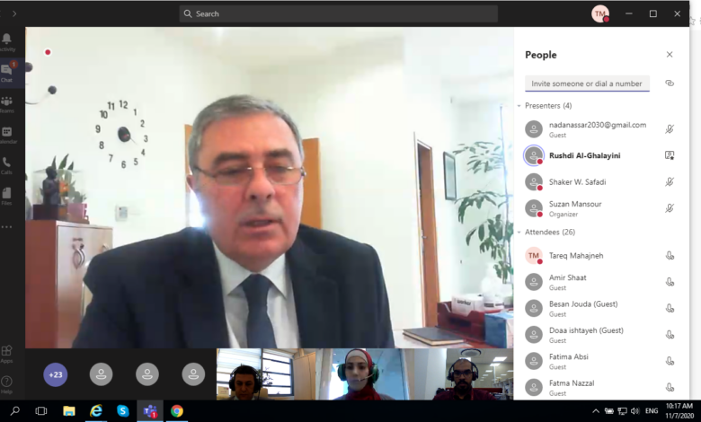 من ناحيته، عبر السيد رشدي الغلاييني مدير عام بنك فلسطين على سعادته لانطلاق الدورة الخامسة من برنامج "فلسطينية لإدارة الأعمال" Mini-MBA بالرغم من الظروف الصعبة التي يعيشها وطنننا في ظل جائحة كورونا، مُرَحِباً بجميع المشاركات في البرنامج عبر شبكة الإتصال التباعدي.
