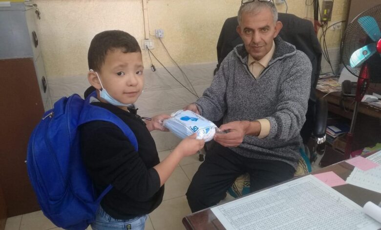 الطالب عمرو صويص يقدم كمامات لمدرسته