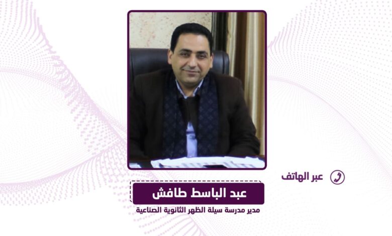 تلفزيون الفجر- معروف عبيد| قال مدير مدرسة سيلة الظهر الثانوية الصناعية عبد الباسط طافش لبرنامج"طلة فجر" ان عدم اكمال الدراسة الجامعية لا يغلق الافاق امام الطلاب .