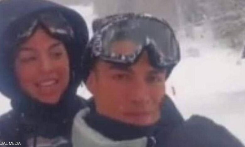 وظهرا رونالدو وجيورجينا على عربة ثلج، وهما يستمتعان بوقتهما، رغم وجود قرارات وقائية سارية في البلاد.