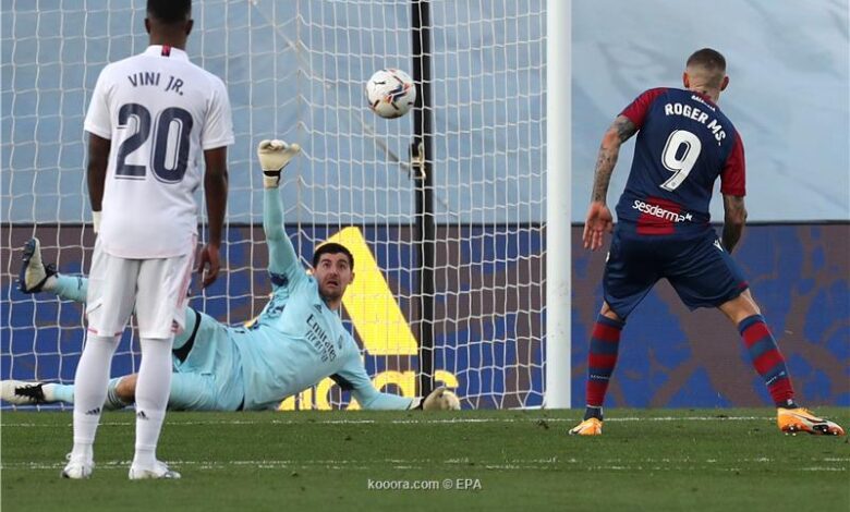 وتألق تيبو كورتوا حارس مرمى ريال مدريد في التصدي لتسديدتين من روجر مارتي لاعب ليفانتي داخل منطقة الجزاء، في الدقيقة 25.