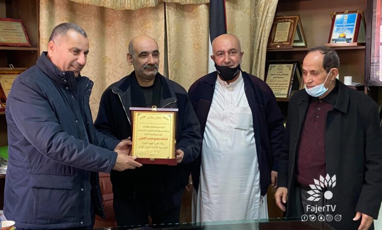 منتصر العناني – تلفزيون الفجر الجديد- كرم وكيل وزارة الاوقاف والشؤون الدينية الدكتور حسام أبو الرب وبحضور مدير مديرية اوقاف طولكرم عدنان سعيد ورئيس لجنة زكاة طولكرم المركزية غازي الحج قاسم وموظفين المديرية المشاركين في دورة تحسين أصوات المؤذنين في شبكة الآذان الموحد في مقر المديرية بعد دورة دامت شهر كامل على يدب المدرب قدامى الكرمي.