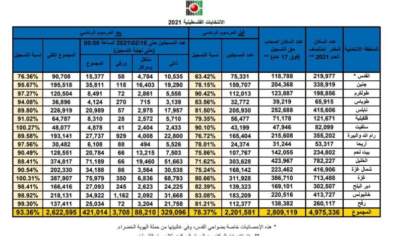 لجنة الانتخابات تنهي مرحلة التسجيل للانتخابات الفلسطينية 2021