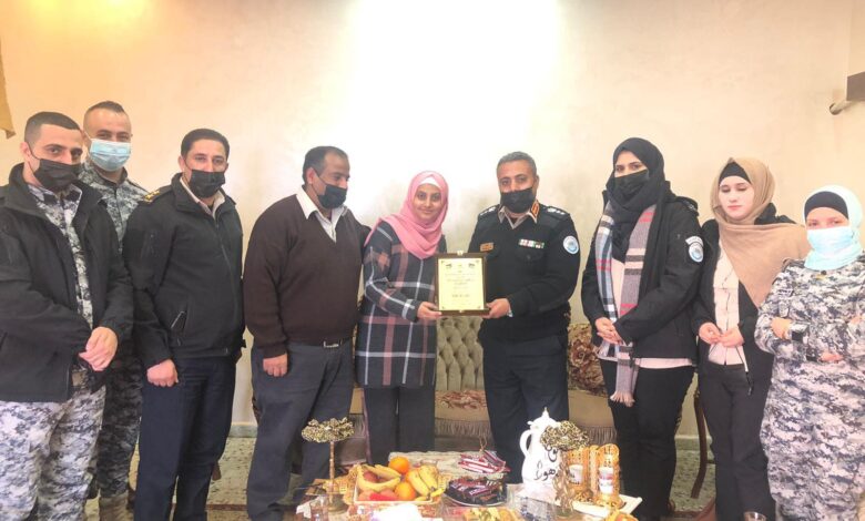 تلفزيون الفجر |  منتصر العناني | الضابطة الجمركية في طولكرم ممثله بمديرها العقيد راضي كتانه ومن مبدأ العلاقات الاجتماعية المتواصلة وتمتين آواصر المحبة بين الافراد والعاملين وبرفقة العلاقات العامة والمستشار القانوني ومدير العمليات تكرم قاموا بتقديم التهاني والتبريكات لابن الضابطة الجمركية الملازم اول محمد ابو هولا وذلك لاتمام حور ابو هولا حفظ القران الكريم كاملًا وهي في الرابعة عشر من عمرها ، العقيد راضي كتانه بارك للملازم ابو هولا هذه الصورة المشرفة ولابنته حور التي نفتخر ونعتز بها لوصولها الى هذه المرحله بحفظ القرآن الكريم ناقلاً مباركات مدير عام الجهاز ، الملازم أول محمد ابو هولا شكر العقيد كتانة والحضور والاهتمام بإبنته بما حققته مشيراً بأنها لفتة رائعه وتستحق الشكر والتقدير لكم ، وفي ختام الزيارة قام كتانه والحضور بتقدير درع تقديري للطالبة حور ووالدها مؤكدين أن ابناء ابناء الضابطة سيبقون الاوفياء نحو التميز والعطاء في بناء الدولة الفلسطينية وعاصمتها القدس الشريف .