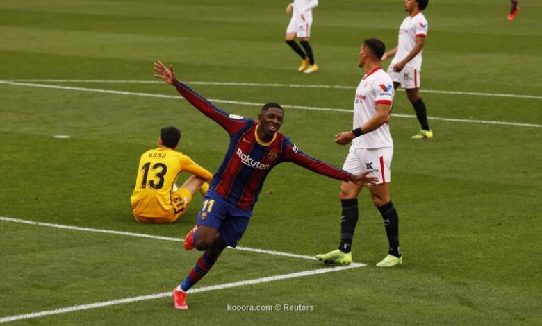 ونجح عثمان ديمبلي في تسجيل الهدف الأول لبرشلونة في الدقيقة 29، حيث تلقى تمريرة في العمق من ليونيل ميسي، وسدد بين قدمي ياسين بونو حارس مرمى إشبيلية.