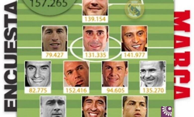 وشارك فى إستطلاع الرأى أكثر من 157 ألف قارئ لاختيار أفضل 11 لاعبا في تاريخ النادي الملكي خلال الـ110 أعوام الماضية.