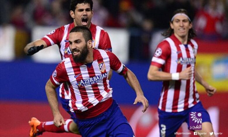 فجأة وعلى بعد خمس دقائق من نهاية الشوط الأول، اندفع الأتلتيكو للأمام بحثاً عن استعادة تفوقه، ونجح النجم التركي أردا توران في توقيع هدف التقدّم بعد تسديدة له من خارج منطقة الجزاء، سكنت الشباك بعدما ارتطمت بالرامي وتغيّر مسارها.