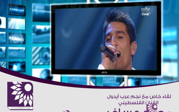 تلفزيون الفجر الجديد | وفاء زيدان – في اتصال هاتفي أجرته الصحفية وفاء زيدان وطاقم الفجر الجديد،مع الفنان محمد عساف المشارك بالبرنامج الغنائي عرب أيدول الذي يبث عبر شاشة ام بي سي ، توجهنا ببعض الاسئلة لمحمد عساف المشترك رقم 3 مجيبا عليها كالاتي.