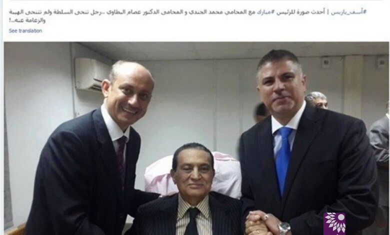 تلفزيون الفجر الجديد– نشرت على صفحة في موقع التواصل الاجتماعي فيسبوك، أحدث صورة للرئيس المصري المخلوع، محمد حسني مبارك، مع المحاميين محمد الجندي وعصام البطاوي.