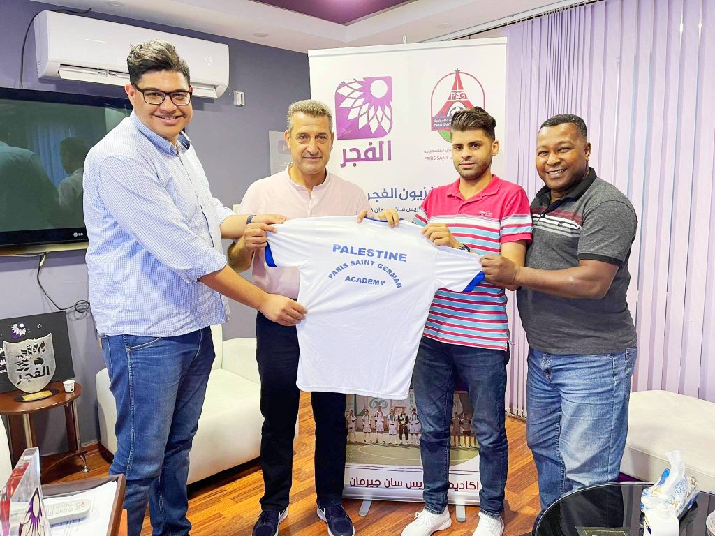 بحضور مدير عام أكاديمية باريس سان جيرمان الفلسطينيه مهيوب لفداوي والمدير الفني للأكاديميه الكابتن جمال حدايدة ومدير تلفزيون الفجر يسري السرغلي ومنتصر العناني المنسق للتلفزيون مع الأكاديمية وبعد حديث معاً مطول للشراكة المستدامة والثقة العالية التي يحظى فيها تلفزيون الفجر الجديد في الساحة الفلسطينة.