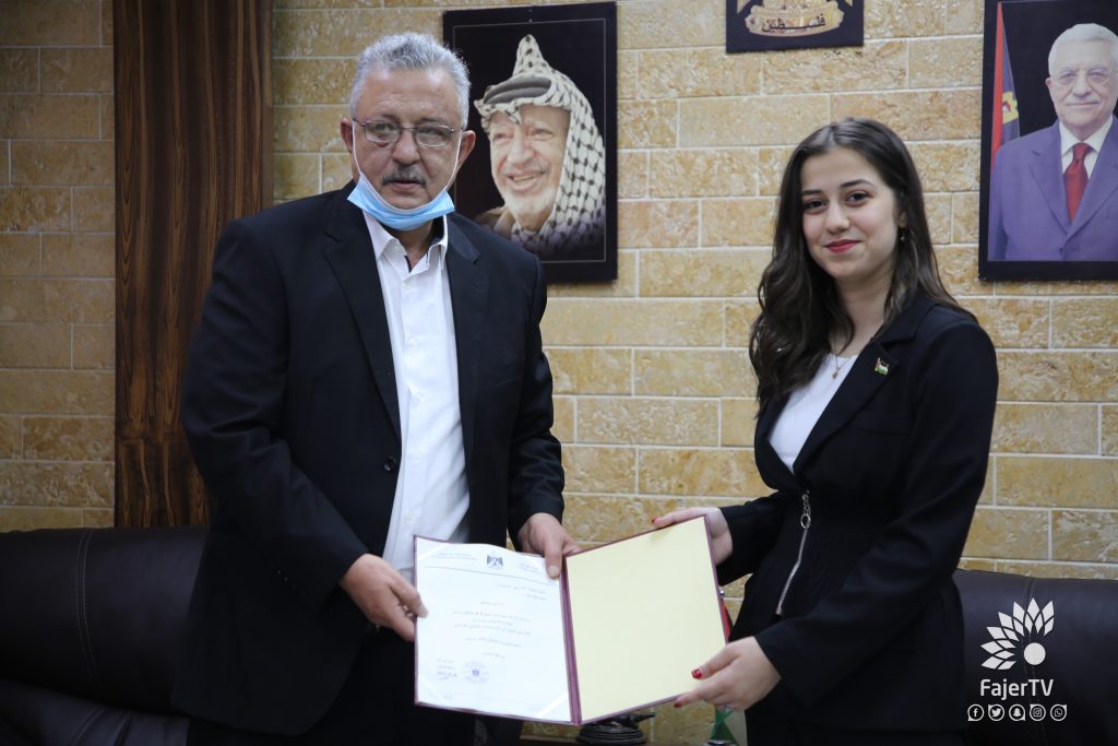 دائرة الإعلام-محافظة طولكرم- تسلمت الطالبة أية مرعي مهام محافظ طولكرم لمدة يوم واحد وذلك في إطار دعم المبادرات الشبابية على مستوى المحافظة، وضمن برنامج شبابي من لجان الشبيبة الثانوية بإقليم حركة فتح بطولكرم.