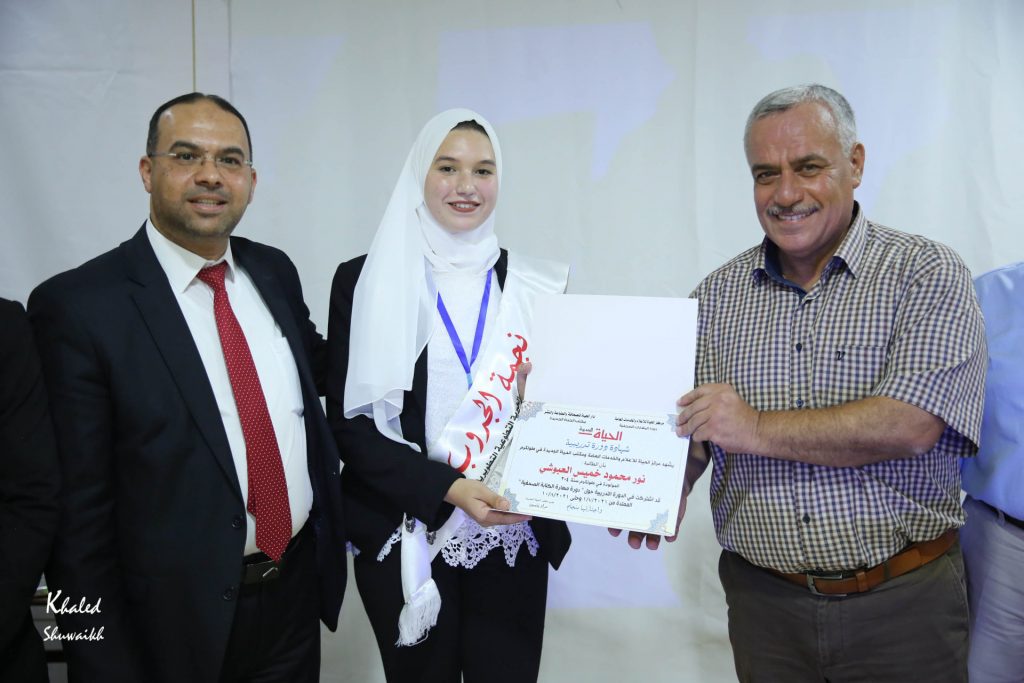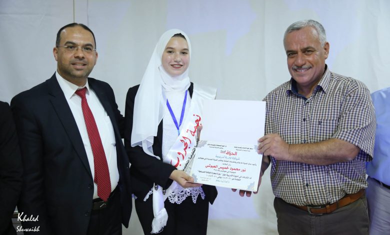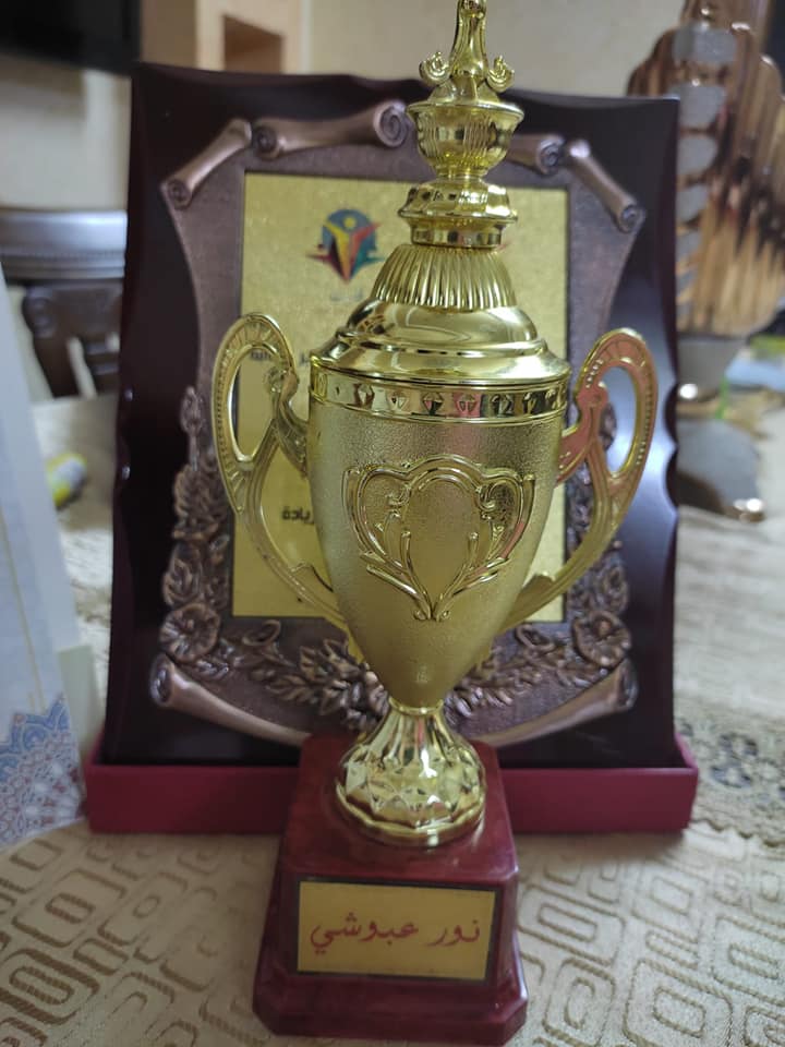 و جاء تكريم العبوشي بحضور والدها القاضي محمود عبوشي ووالدتها وأمين سر حركة فتح إياد الجراد ومدير فرع جامعة القدس المفتوحة د.سلامة سالم والدكتور نائل الحطاب والصحفي مراد ياسين والمدرب القدير محمد الصباح ومشرفة جروب قارب الدكتورة أماني ياسين وعدد من الأهالي والمدعوين في حفل مميز ,جاء تكريم الطالبة نور من قبل المشرفة الدكتورة أماني ياسين والنادي الثقافي ممثلة بالمدرب محمد الصباح على جهودها التطوعية الخيرية وأفكارها الريادية.
