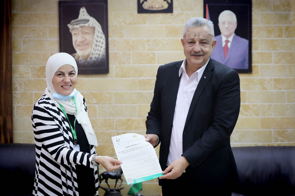 من جانبها ،قدمت القبج للمحافظ أبو بكر شرحاً عن استكمال عمل طواقم التعداد لبدء العمل الميداني والعد الفعلي للتعداد الزراعي بمحافظة طولكرم وجميع محافظات الوطن، خلال الفترة الواقعة ما بين 23-10 إلى 31-12-2021، مثمنةً جهود المحافظ أبو بكر بدعم طواقم التعداد ومساندتهم، موضحة بأن الفرق تعمل ضمن إجراءات السلامة العامة لمواجهة فيروس كورونا، علاوة على أن جميع الكوادر يحملون شهادات التطعيم ضد الفيروس.