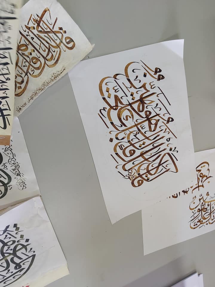 واستعرض ضميري نماذج لكافة أنواع الخطوط العربية، وقامت الطالبات بكتابة أسماءهن وعبارات جميلة بأنواع الخطوط المختلفة.