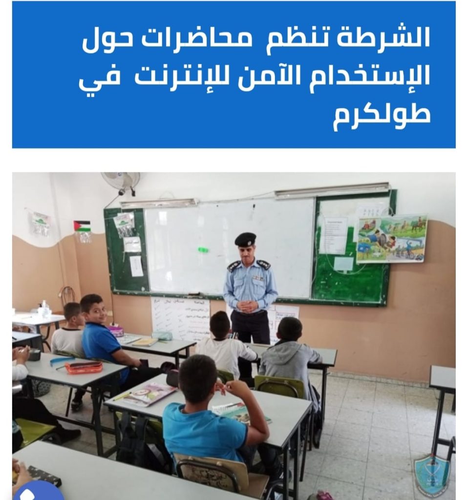 طولكرم – نظمت الشرطة اليوم 3 محاضرات توعوية حول الإستخدام الآمن للإنترنت والتأكيد على الإلتزام بالبروتوكول الصحي في مدرسة عزبة شوفة في طولكرم.