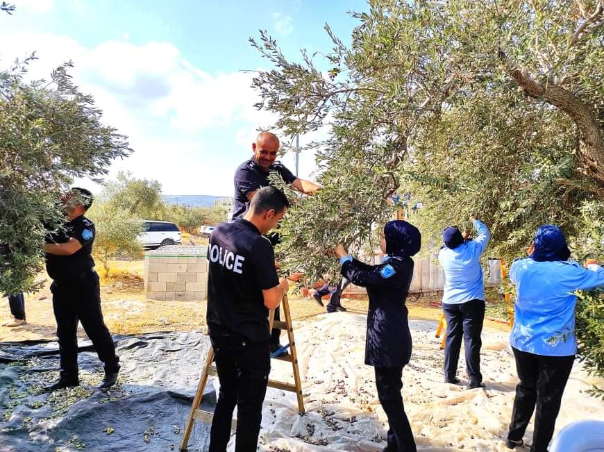 الشرطة تشارك المزارعين قطف ثمار الزيتون في بلدة عتيل شمال طولكرم