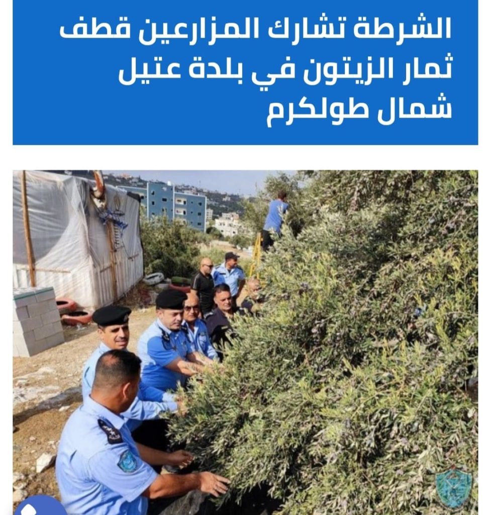 وذكرت إدارة العلاقات العامة والإعلام في الشرطة، أنه شارك في هذه الفعالية ضباط من إدارة العلاقات العامة والإعلام والمركز المتنقل والتفويض السياسي ومركز شرطة شويكة ومركز شرطة عتيل في شرطة المحافظة خلال زيارتهم لبلدة عتيل حيث انطلق المشاركون منذ ساعات الصباح الباكر إلى ارض احد المواطنين بالبلده لمساعدته ومد يد العون له في قطف ثمار الزيتون .