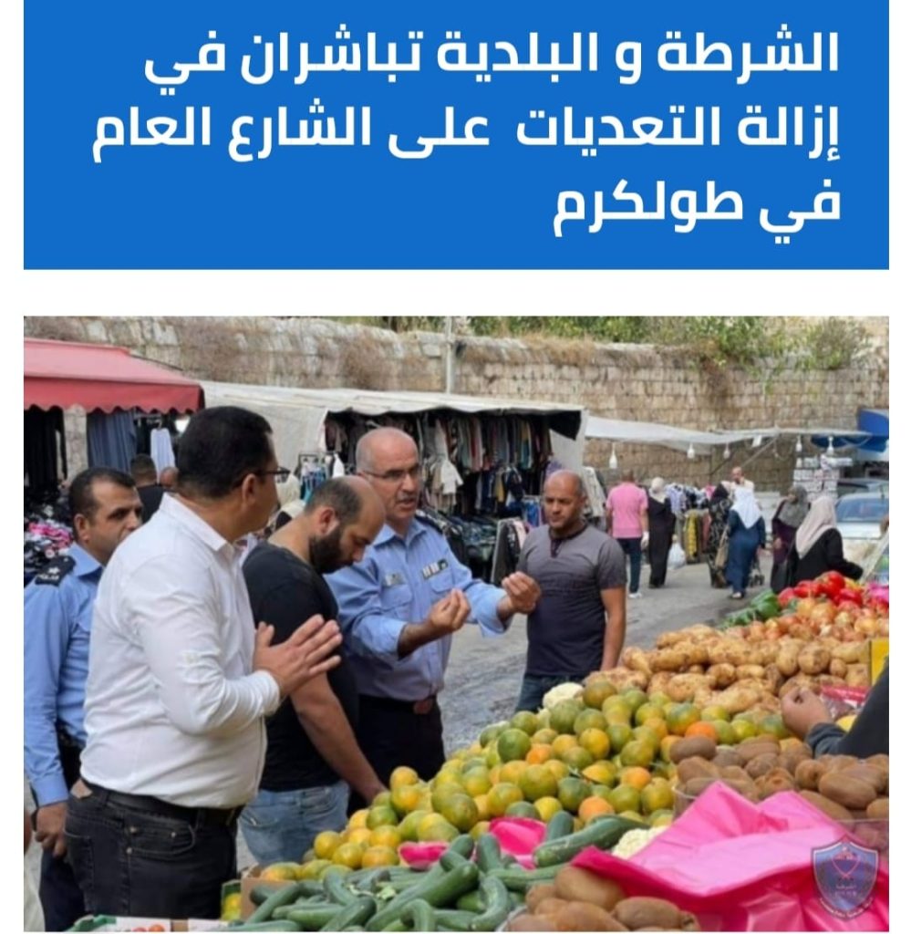 طولكرم – باشرت الشرطة اليوم بالتعاون مع طواقم البلدية المختصة في إزالة التعديات والعوائق في طولكرم .