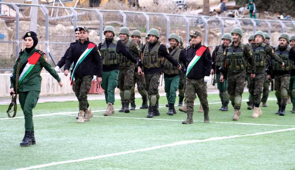 عرض عسكري لقوات الامن الوطني في جامعة الاستقلال في ذكرى الانطلاقة
