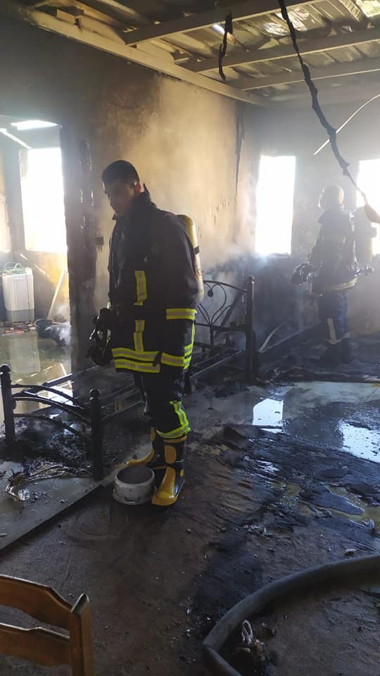 بالصور | الدفاع المدني يخمد حريق داخل منزل في طولكرم