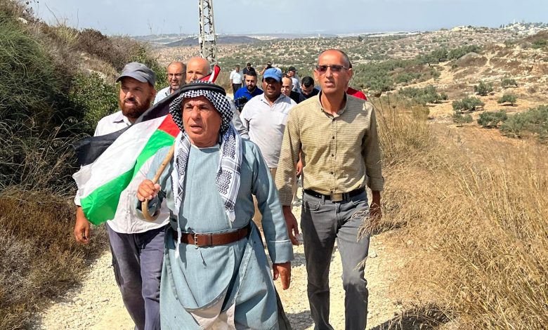 صور | أهالي قرى واد الشعير في مسيرة احتجاج في خربة سمارة لمناهضة الاستيطان امام جيش الاحتلال والمستوطنين
