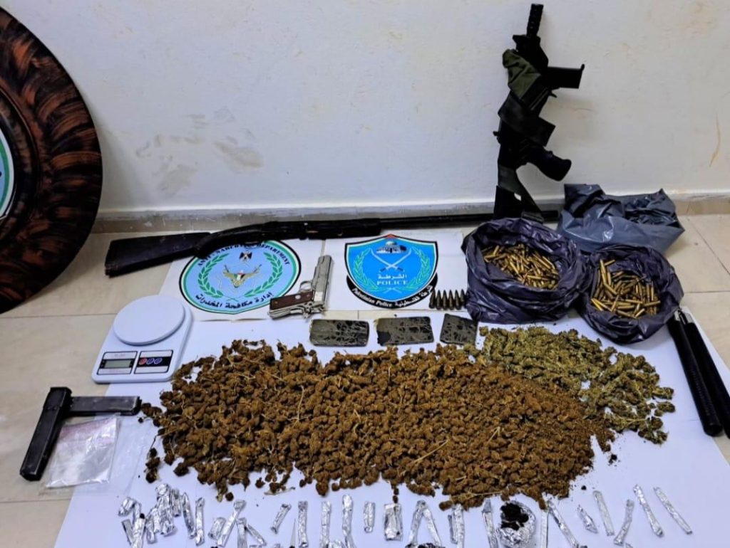 وذكرت إدارة العلاقات العامة والإعلام في الشرطة أنه بمتابعة حثيثة لتجار المخدرات وبناء على معلومات وردت لفرع مكافحة المخدرات بحيازة شخص لمواد يشتبه بأنها مخدرة وأسلحة وذخيرة من سكان مخيم طولكرم وهو من أكبر تجار المخدرات والأسلحة بالمدينة، وعلى الفور قام فرع مكافحة المخدرات وبمساندة من فرع المباحث العامة والشرطة الخاصة والدوريات المشتركة باستصدار مذكرة تفتيش وبتفتيش المنزل أصولا تم القبض على المطلوب وبحوزته 854.6 غم من مادة القنب المهجن المخدرة و 430.8 غم من مادة الحشيش المخدرة وأيضا تم ضبط 3 قطع أسلحة مسدس وخرطوش وكارلو مصنع.