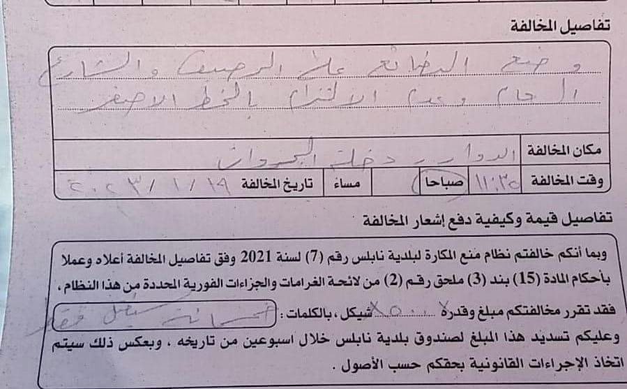 لما بدك تشتغل صح ونابلس نموذج!! بدء تنفيذ المخالفات بحق المتجاوزين الخط الأصفر للمحلات في مدينة نابلس