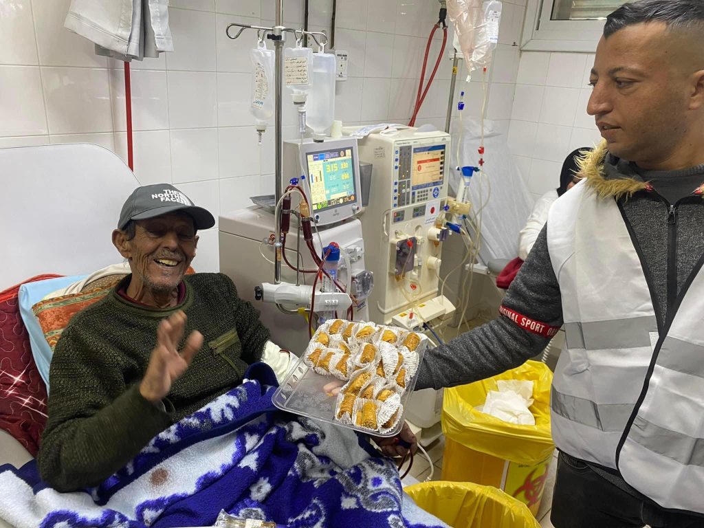 اعضاء الهيئة الادارية لمرضى الفشل الكلوي الهدايا على المرضى في مشفى الشهيد ثابت لمناسبة ذكرى الاسراء والمعراج