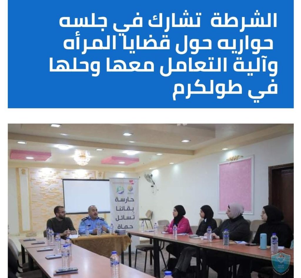 و ذكرت إدارة العلاقات العامة والأعلام في الشرطة أن هذه الورشة التي نظمت بمبادرة من المركز الفلسطيني للديمقراطية والسلام وشارك الى جانب الشرطة عدة مراكز تعنى بشؤون المرأة منها مركز العودة ومركز ثقافي كفر اللبد وجمعية النجدة في طولكرم للحديث حول دور شرطة حماية الأسرة والأحداث في الشرطة في حماية النساء من العنف وآلية تعزيز وصولهن للعدالة.