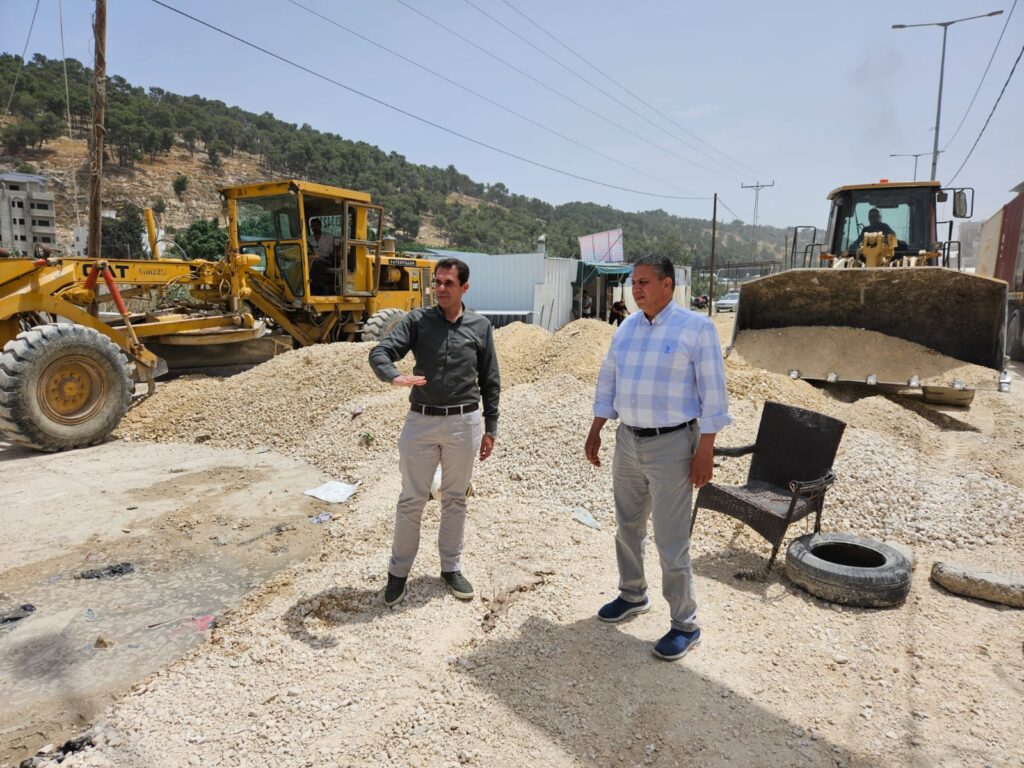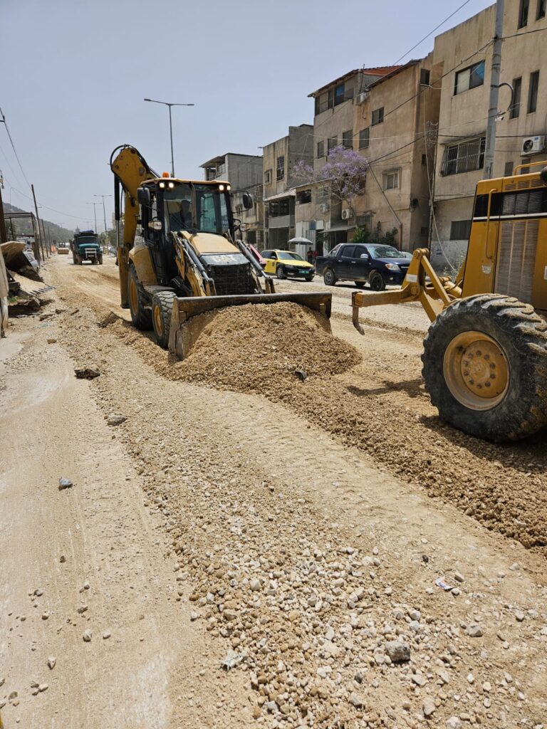 غرفة تجارة طولكرم بالشراكة مع البلدية والأشغال تقوم بأعمال تسويةوتمهيد لشارع نورشمس – نابلس
