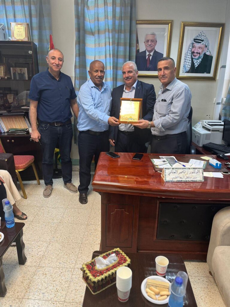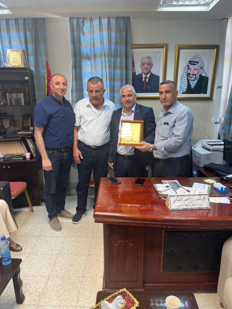 تقديراً لجهودهم الانسانية والطبية والخدمات التي دوماً يسعون لتقديمها للمواطن بأفضل صورها في ظل ظروف صعبة يعيشها ابناء الشعب الفلسطيني وفي صورة العدوان الحاصل عليه يومياً لتكون المشافي الفلسطينية هي الاهتمام الاول ، ولهذا الدور الكبير وتقديراً لهذا الدور الهام قام مدير العلاقات العامة في المخابرات العامة اللواء محمد عبد ربه ( ابو نضال ) ووفد من مخابرات اريحا بتكريم الدكتور ناصر العناني مدير عام مشفى اريحا الحكومي والطواقم الطبية فيه ، أكدَ الدكتور العناني بعد الترحيب بالوفد بأننا نعمل معاً في ذات الخندق كون المشافي هي واجهة مهمة للمواطن الفلسطيني وتهتم بصحته ونقدم اعلاها رغم كل الصعوبات ، وشكر الدكتور ناصر العناني اللواء محمد عبد ربه على هذه اللفتة الهامة ، اللواء ابو نضال نقل تحيات اللواء ماجد فرج مدير عام المخابرات العامة للعناني والطواقم الطبية في مشفى اريحا مشيداً بهذا الدور الكبير الذين يعملون فيه ، واختتم اللواء ابو نضال بأن مشفى اريحا مديراً وطواقم أكدوا على دورهم وجدارتهم في تقديم الخدمات الصحية للمواطن من اريحا ومن خارجها ليكونوا سفراء للصحة ، وسلم ابو نضال في نهاية اللقاء والزيارة درعاً تقديرياً للدكتور ناصر العناني والطواقم في المشفى .