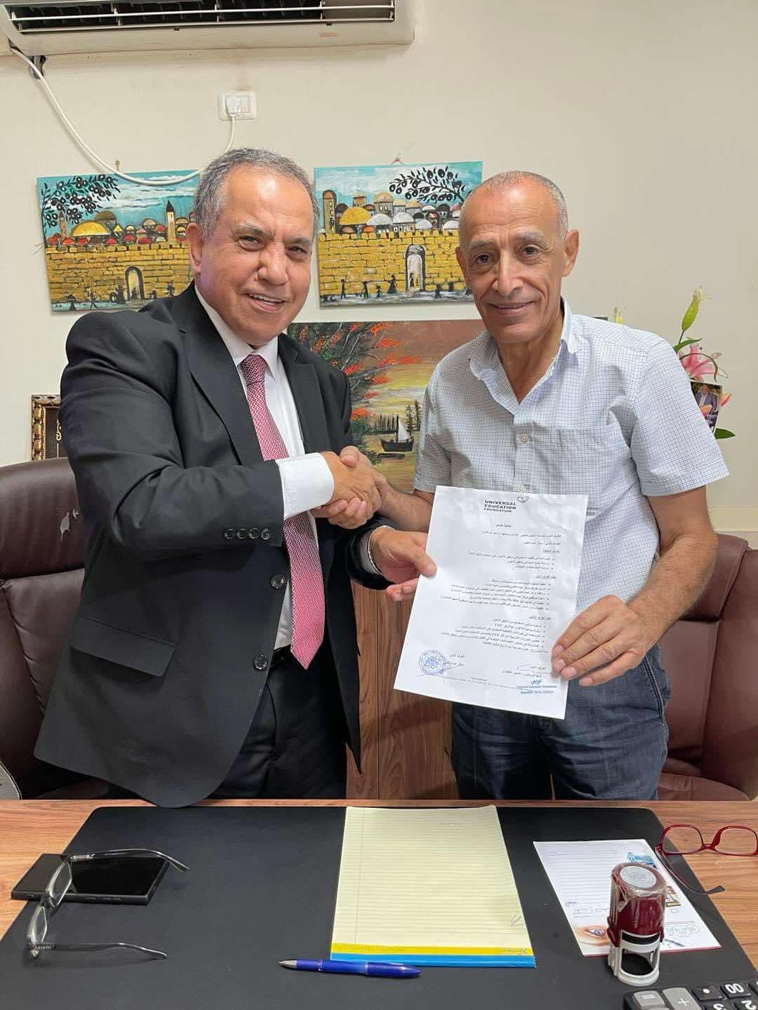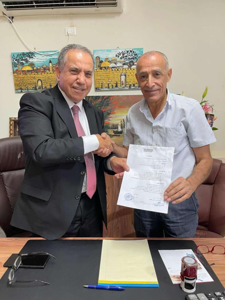 وقع د. أسعد الرملاوي المدير التنفيذي لمؤسسة التعليم العالمي ( uef) ود. أرب العناني مدير مركز عبده التخصصي في مدينة أريحا اتفاقية تعاون والتي تنص وتهدف الى المساعدة في تثقيف المجتمع بمناطق الأغوار على استخدام المياه الآمنة، الدكتور الرملاوي أكدَ أن هذا التعاون يأتي في إطار الحفاظ على المياه والتوعية الدائمة شاكراً مركز عبده التخصصي ممثلاً بمديره الدكتور أرب العناني على تلبية الدعوة لتوقيع الإتفاقية مما يؤكد أهمية الشراكة لخدمة مواطنا والوصول الى أعلى درجات التوعية ،