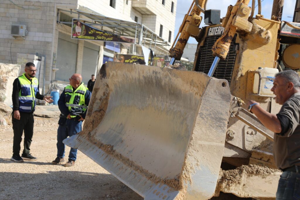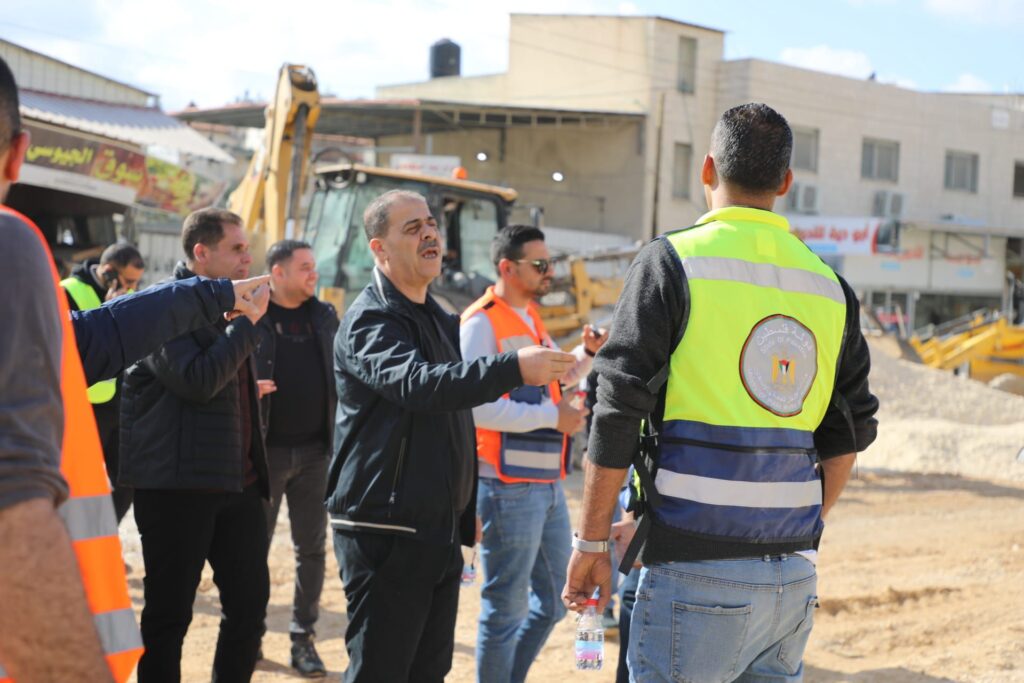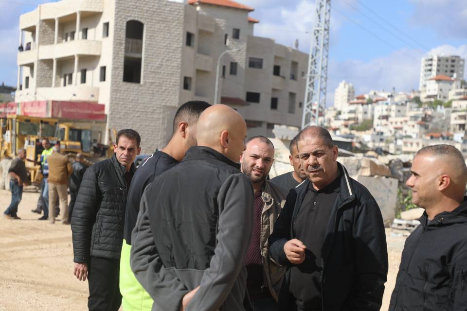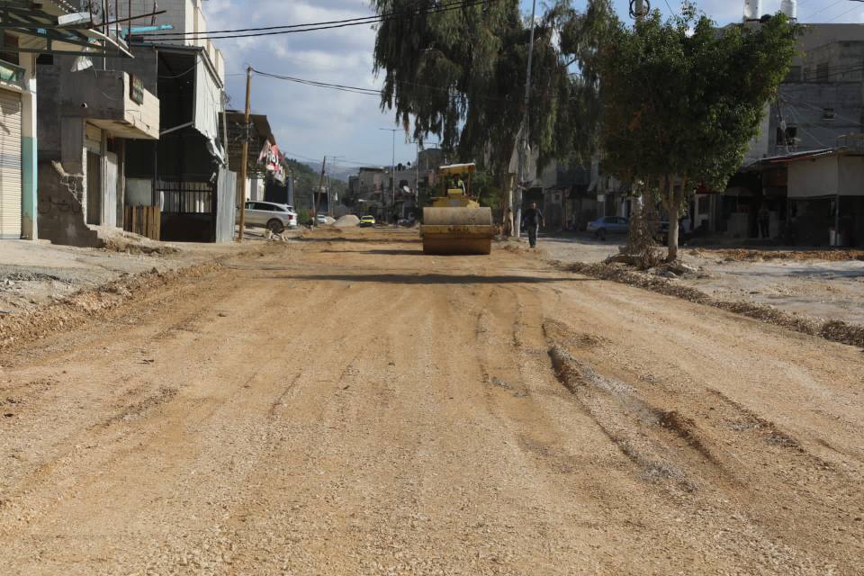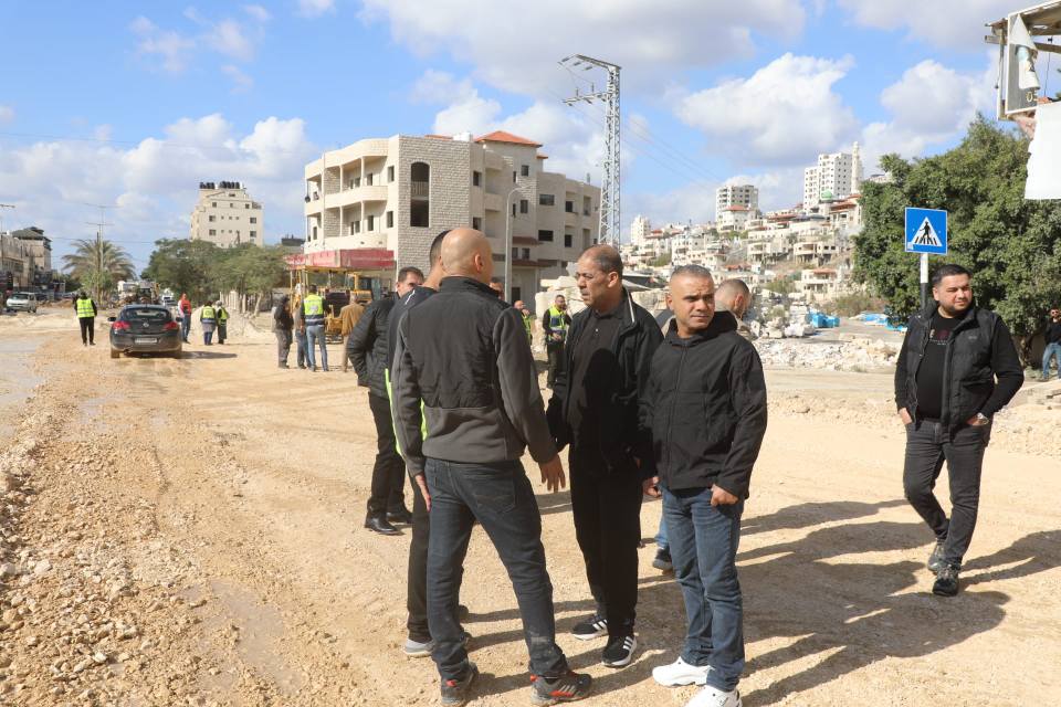 طقاطقة يتابع اعمال الطواقم الفنية لإعادة تأهيل الشارع الرئيسي المقابل لمخيم نور شمس