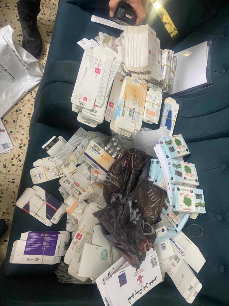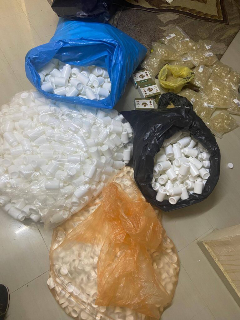 وخلال التفتيش، ضبطت كميات كبيرة من الأدوية غير المرخصة، إضافة إلى كميات أخرى من العبوات الجاهزة للتعبئة وإعادة التغليف والأدوات بطرق مخالفة للقانون.